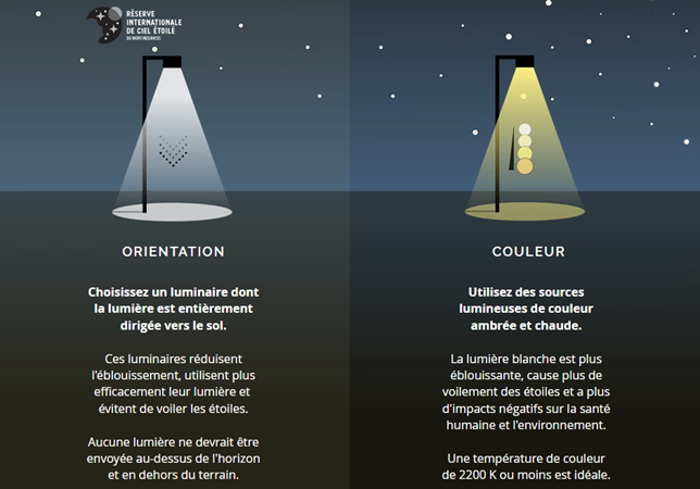 Nous vous invitons à consulter la réglementation municipale applicable et à modifier de façon consciencieuses et volontaire votre éclairage.
